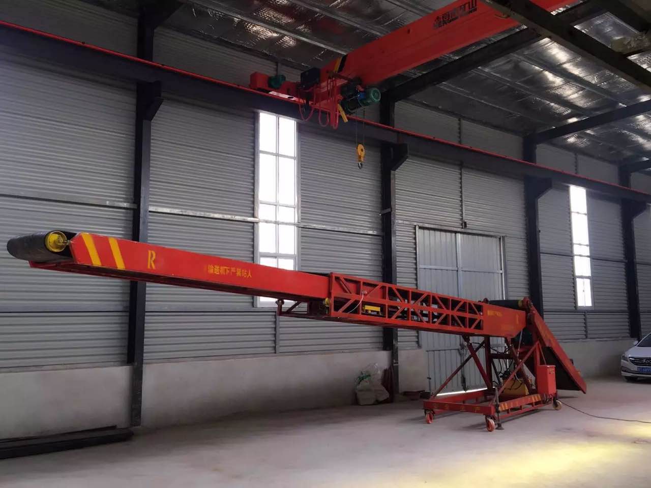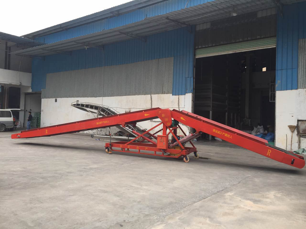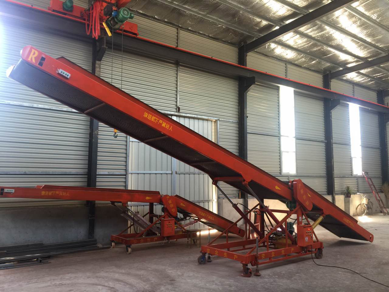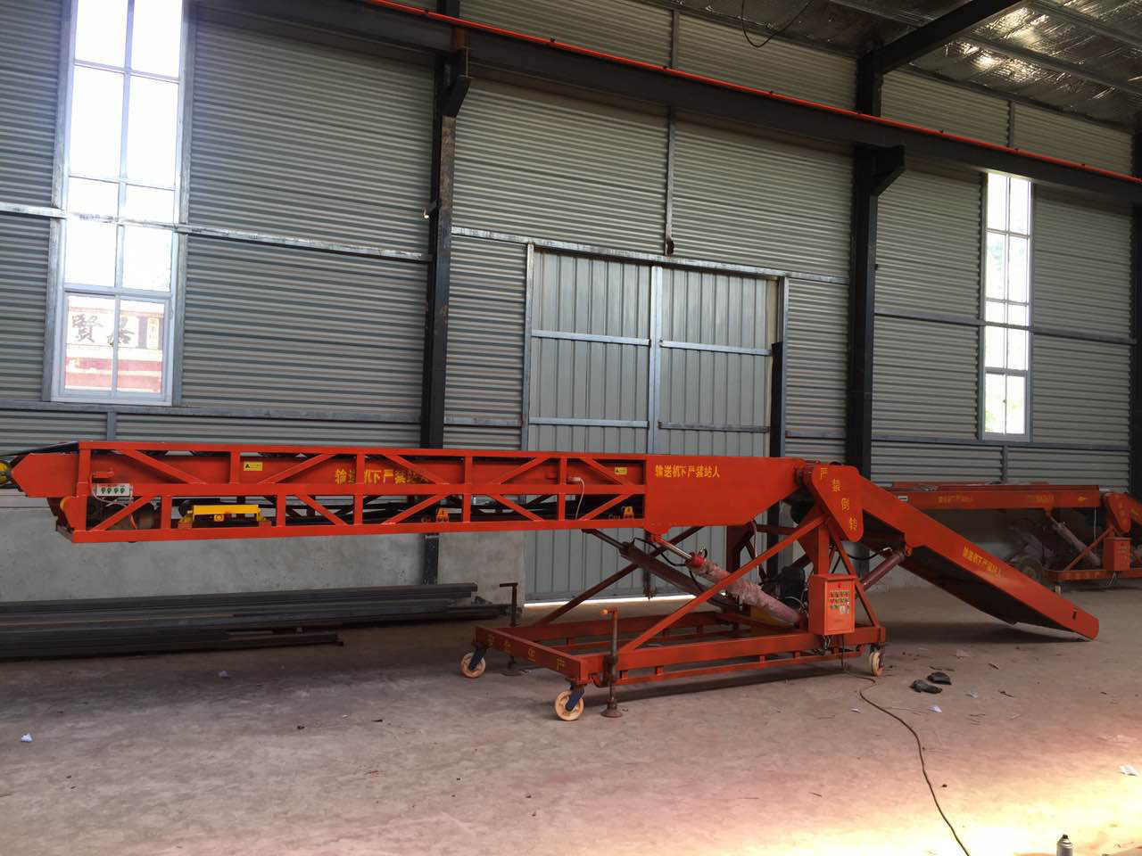 移動式膠帶裝卸輸送機是一種功效高、使用方便、機動性好的輸送裝卸設備。此機械是專門為糧倉、面粉廠、倉庫、工地堆放砂石等量身定做的一種機械。與拖拉機、平板車配合使用,移動靈活。既省時省力,又提高工作效率,是加工單位理想的輸送設備。適用于散糧或包裝物進倉堆高、堆垛、裝車、卸車和中間轉接輸送等。環形膠帶,充氣輪胎,電動升降,自動保護電控箱,快速電器插頭。整機輕巧、移動靈活、噪音小、操作簡單、維修方便、包裝運行平穩,破包率低,能滿足輸送包裝物的一切要求,高度可隨意調節,可水平輸送,也可登高作業。 規格型號 10m(6+4)*帶寬600mm 12m(7+5)*帶寬600mm